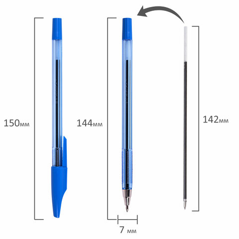 Стержень снабжен качественными шариковыми чернилами и пишущим узлом 0,7 мм, способным проводить линию письма шириной 0,5 мм. Длина сменного стержня - 150 мм.