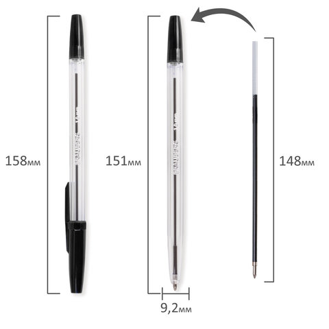 Ручка снабжена сменным стерженем 152 мм, что позволяет увеличить срок службы. Диаметр пишущего узла 1 мм создает ровную линию письма, равную 0,5 мм. Цвет чернил - черный.