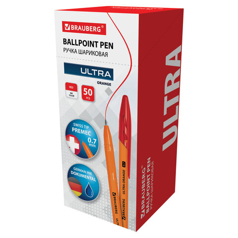 Шариковая ручка BRAUBERG "ULTRA ORANGE" - незаменима для офиса, школы и дома.