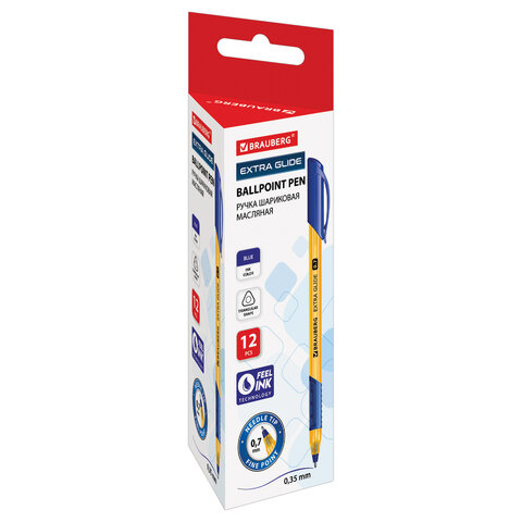 Шариковая ручка с трехгранным тонированным корпусом и резиновым грипом для удобства письма, исключающим скольжение пальцев. Заправлена чернилами ультрапониженной вязкости и обеспечивает мягкое и комфортное письмо. Надежный пишущий узел диаметром 0,7 мм создает тонкую линию равную 0,35 мм. Цвет чернил - синий. Стильный корпус соответствует офисному стилю.