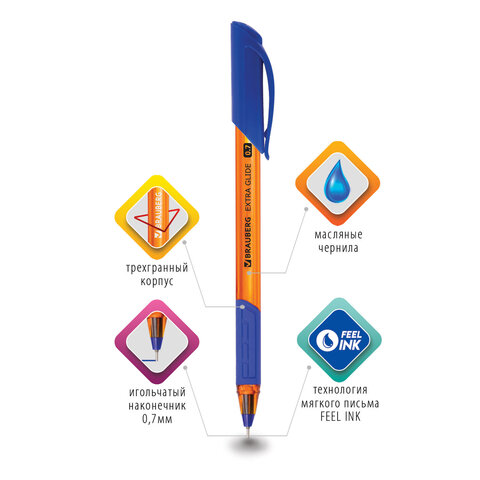 Шариковая ручка BRAUBERG "Extra Glide GT Tone Orange" - надежный и долговечный предмет для ежедневного использования.