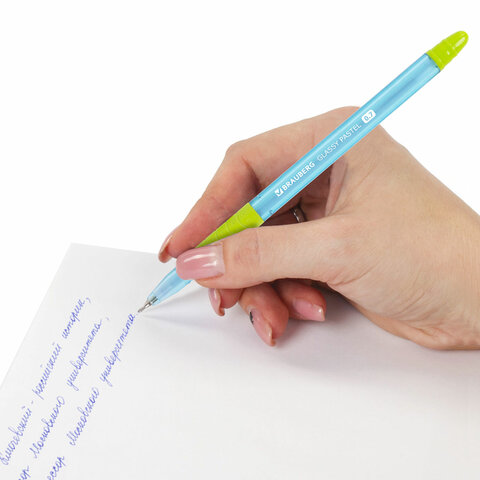 Ручка шариковая масляная с грипом, кросс-серия PASTEL, BRAUBERG, СИНЯЯ, стандартный узел 0,5 мм, линия письма 0,25 мм, 144488