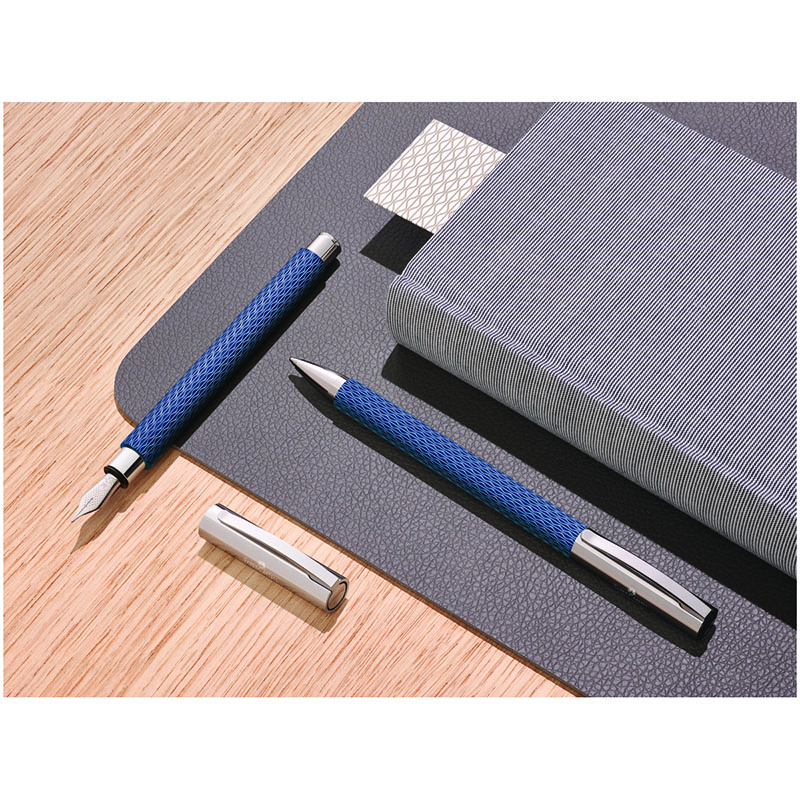 Подарочная шариковая ручка Faber-Castell Ambition OpArt Deep Water. Корпус ручки реализован в стиле OpArt (художественное течение второй половины XX века, использующее различные оптические иллюзии, основанные на особенностях восприятия плоских и пространственных фигур). Вдохновением для создания данной серии ручек послужили океанские глубины, поэтому цвет корпуса и узор выполнены в оттенках глубокого синего цвета. Корпус ручки создан из драгоценной смолы, покрыт лаком с тонкой гильошированной гравировкой. Основание пишущего узла и колпачок изготовлены их хромированного полированного металла. Ручка обладает поворотным механизмом. Колпачок снабжен подпружиненным металлическим клипом, который позволит прикрепить ручку к ежедневнику или блокноту. Ручка поставляется в белой подарочной коробочке. Эта стильная ручка станет желанным подарком для ценителей качественных и элегантных пишущих принадлежностей.