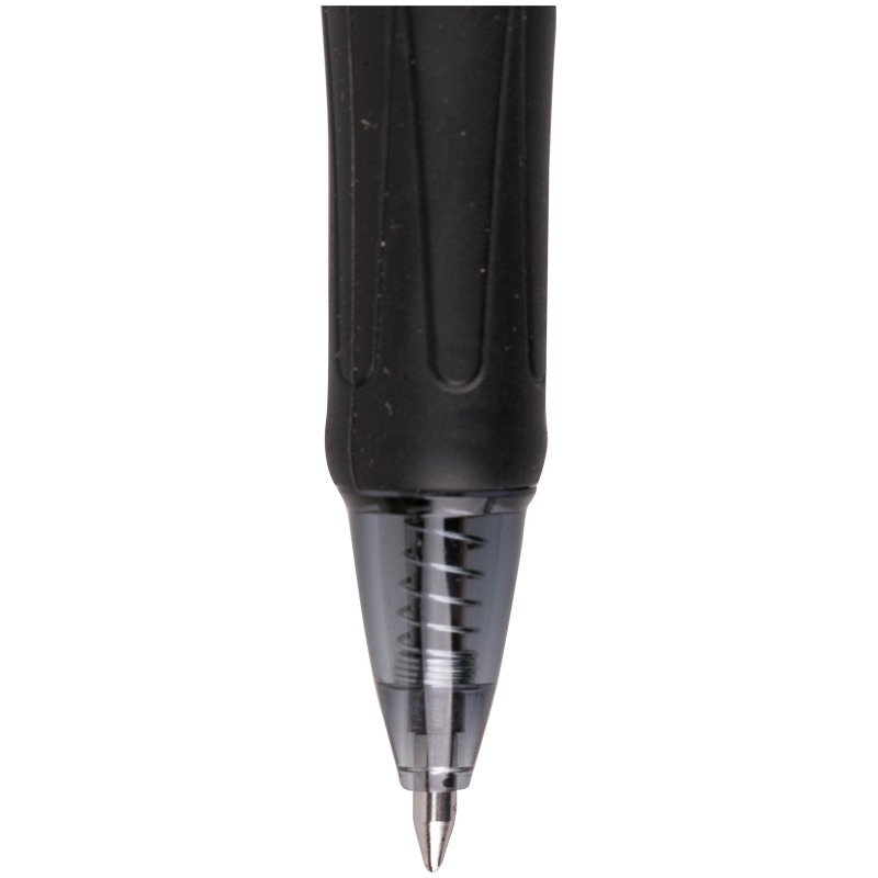 Шариковая ручка с чернилами на масляной основе. Корпус из прозрачного пластика с элементами в цвет чернил. Благодаря специальной резиновой накладке грип-зоны, ручка не проскальзывает при письме