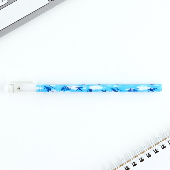 Ручка шариковая синяя паста 0.5 мм с колпачком «Танки» пластик
