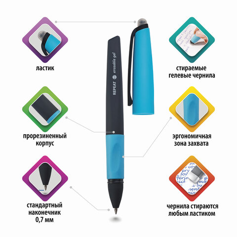 Стираемая гелевая ручка BRAUBERG "REPEAT" обладает уникальным сочетанием ярких обесцвечивающихся термочернил, стильного дизайна и высочайшего качества исполнения.