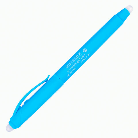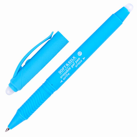 Ручка пишет специальными гелевыми чернилами синего цвета. Снабжена двумя ластиками для удаления надписей: на колпачке и на корпусе ручки. При письме и стирании ручка не повреждает бумагу, делая исправления незаметными. Диаметр пишущего узла 0,7 мм создает тонкую линию письма, равную 0,5 мм. Прорезиненный корпус для комфортного и длительного использования.