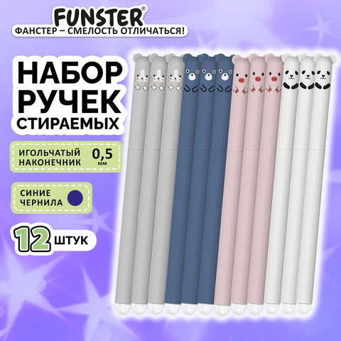 Стираемая ручка FUNSTER - надежный инструмент для ведения аккуратных записей и создания хорошего настроения. Ручка обеспечит заметки без помарок, а очаровательный дизайн с колпачками в виде милых животных подарит позитивные эмоции в процессе письма.