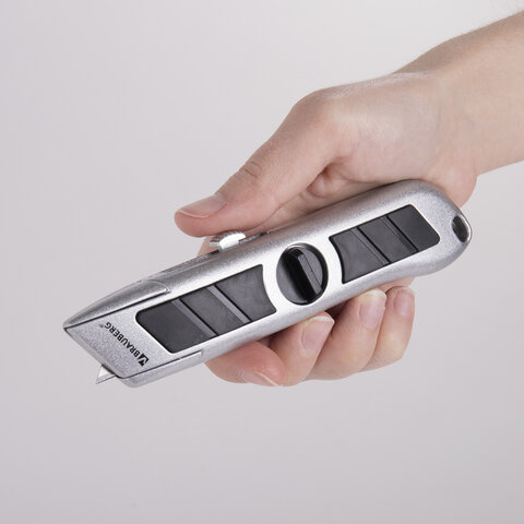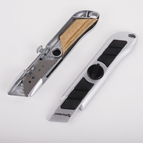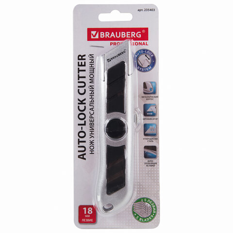 Универсальный мощный нож BRAUBERG «Professional» станет настоящим помощником любого мастера, имеющего дело с разрезанием бумаги, картона и более плотных и вязких материалов: линолеума, гипсокартона, ковролина. В корпусе изделия - 5 дополнительных лезвий.