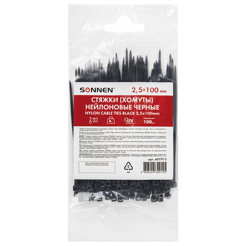 Стяжки (хомуты) нейлоновые SONNEN используются при проведении электромонтажных работ для крепления кабелей, проводов и других предметов к несущей поверхности или для соединения между собой. Такие стяжки также используются для бытовых и хозяйственных нужд.