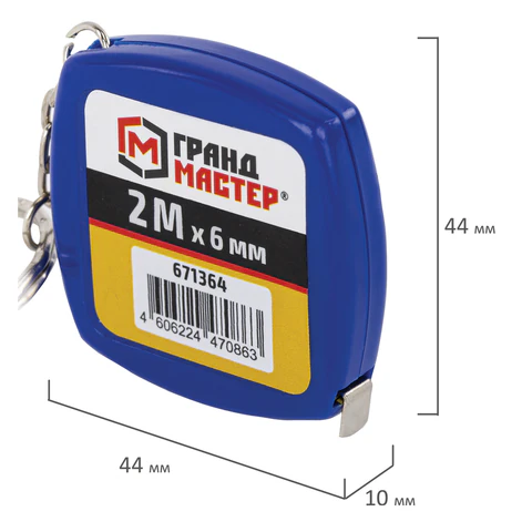 Рулетка-брелок 1 м х 6 мм, пластиковый корпус, ГРАНДМАСТЕР, 671369
