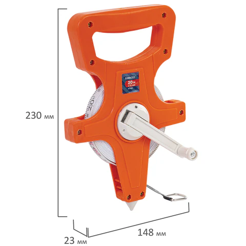Размеры измерительной ленты: длина 20 метров, ширина 13 миллиметров.