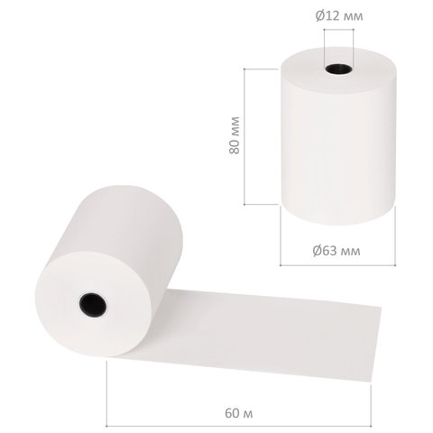 Чековая лента ТЕРМОБУМАГА 80 мм (диаметр 60 мм, длина 50 м, втулка 12 мм) КОМПЛЕКТ 60 шт., BRAUBERG, 115376