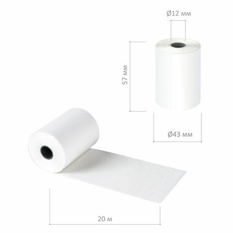 Чековая лента ТЕРМОБУМАГА 57мм (диаметр 42мм, длина 20м, втулка 12мм) КОМПЛЕКТ 6шт.,К, 117528