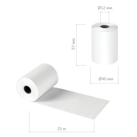 Чековая лента ТЕРМОБУМАГА 57 мм (диаметр 33 мм, длина 15 м, втулка 12 мм) КОМПЛЕКТ 12 шт., BRAUBERG, 115233