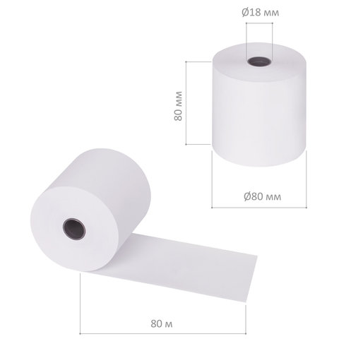 Чековая лента ТЕРМОБУМАГА 80 мм (диаметр 60 мм, длина 50 м, втулка 12 мм) КОМПЛЕКТ 60 шт., BRAUBERG, 115376