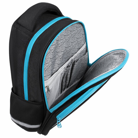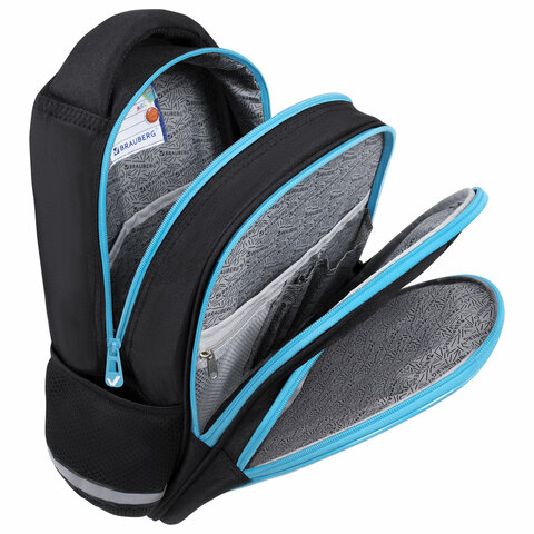 В основном отделении рюкзака можно легко и быстро разместить учебники и тетради формата А4+, воспользоваться дополнительным карманом. Также в основном отделении находится именная карточка школьника. Фронтальное отделение вмещает тетради и учебники формата А5, внутри находится органайзер для канцтоваров, карман для телефона и отделение из сетки на молнии. Такая организация пространства поможет держать принадлежности в сохранности и приучить ребенка к порядку.