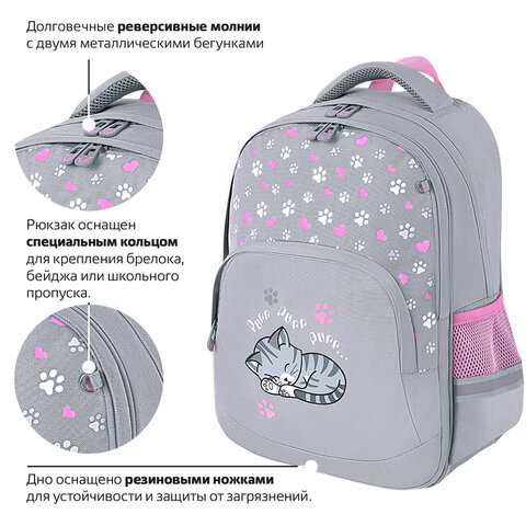 Рюкзак имеет специальное кольцо для крепления брелока, бейджа или школьного пропуска.