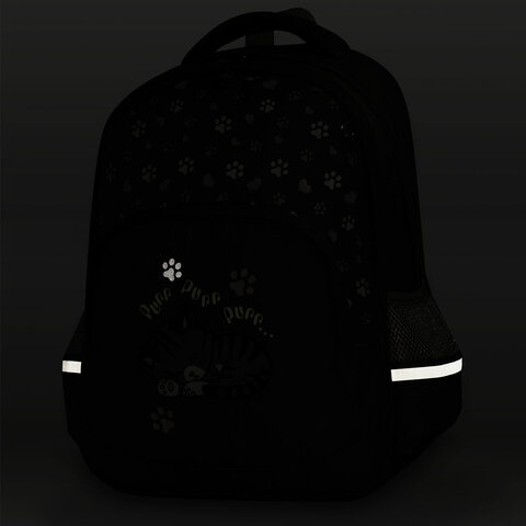 Светоотражающие элементы рюкзака расположены спереди (с помощью высококачественной печати на ткани специальной краской), на торцах и на лямках. Они необходимы для безопасности пользователя в темное время суток.
