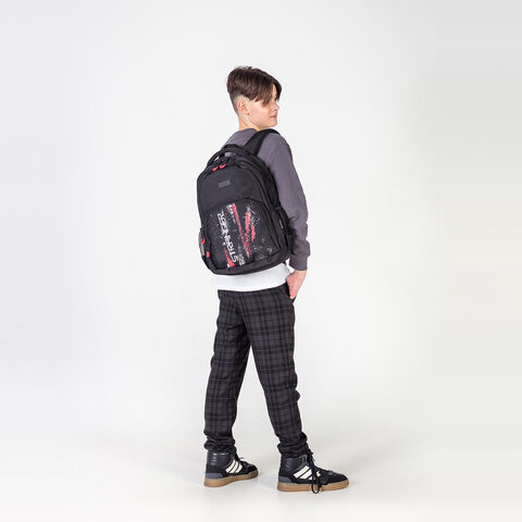 Рюкзак изготовлен из надежного и качественного материала – полиэстера. Благодаря специальной обработке материал обладает водоотталкивающим эффектом. Сдержанный, но в тоже время оригинальный принт выполнен с использованием специальной безопасной краски. Серые элементы дизайна обладают светоотражающим эффектом, что способствует дополнительной безопасности владельца в условиях недостаточной видимости.