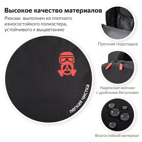 Рюкзак BRAUBERG FASHION CITY универсальный, карман-антивор, "Missing cat", черный, 44х31х16 см, 271673