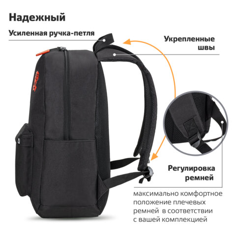Рюкзак STAFF IMPROVE универсальный, 2 отделения, эргономичный, черный, 45х32х16 см, 273921