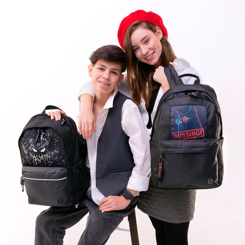 Функциональный рюкзак BRAUBERG с современным дизайном - идеальное решение для девушек, которые хотят быть в центре внимания. Комбинация черного цвета и запоминающегося принта в сочетании с трендовыми бегунками соответствует последним модным тенденциям.
