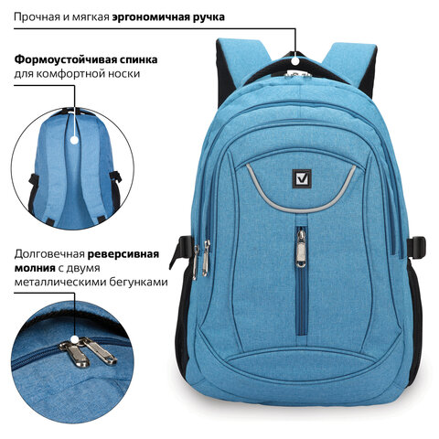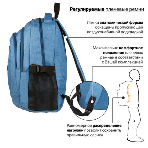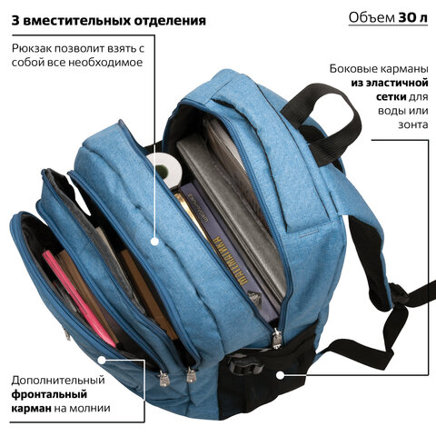 Удобный и надежный рюкзак BRAUBERG имеет оптимальную функциональную организацию – 3 вместительных отделения, боковые карманы и наружный карман для быстрого доступа к необходимым вещам.