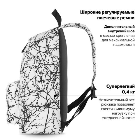 Рюкзак классической конфигурации имеет основное большое отделение и передний карман на молнии. Надежные материалы, качественная фурнитура, плотная спинка, удобные плечевые лямки и большое разнообразие дизайнов делают эту модель универсальной.