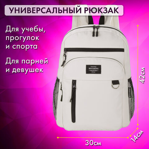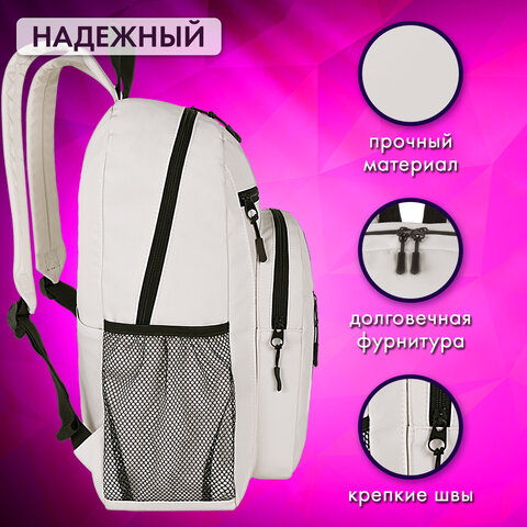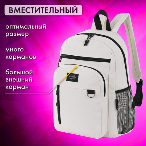 Множество карманов и вместительное основное отделение позволят упорядоченно разложить большое количество вещей различных размеров, в зависимости от целей использования рюкзака. Учебные пособия, канцтовары, папки формата А4, крупногабаритные предметы, например, одежда, вещи первой необходимости, такие как салфетки, платочки, бутылочка с водой, ключи, кошелек, документы и другие важные мелочи – все это можно с легкостью разметить в рюкзаке.