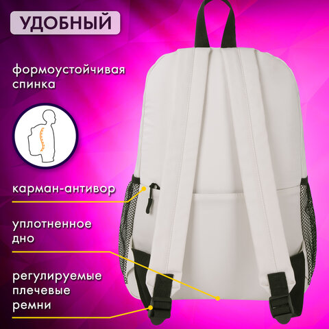 Плотная спинка рюкзака обеспечивает удобное прилегание к спине, способствует комфортному ежедневному использованию.