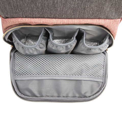 Рюкзак для мамы BRAUBERG MOMMY с ковриком, крепления на коляску, термокарманы, серый, 40x26x17 см, 270819