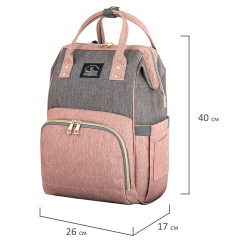 Рюкзак для мамы BRAUBERG MOMMY, крепления для коляски, термокарманы, серый, 41x24x17 см, 270818