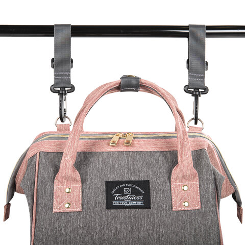 С помощью универсальных съемных карабинов рюкзак можно закрепить на ручке любой модели коляски, детского велосипеда.