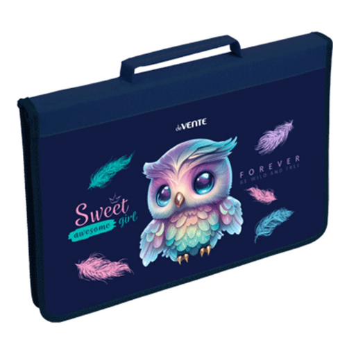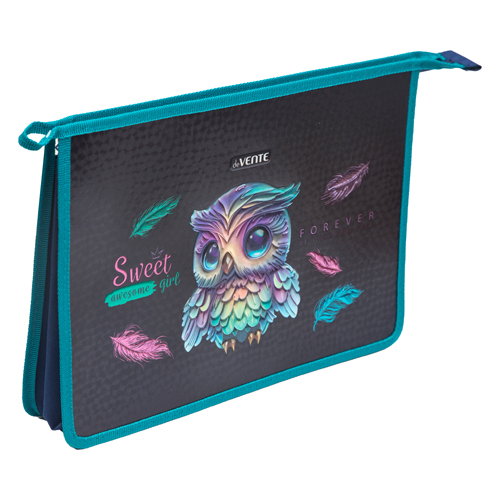 Папка для труда " deVente " А4 Happy Owl, молния сверху, с ручками, картон, фольга, конгрев, текстильное расширение 80мм, 33,7*24,3*8см