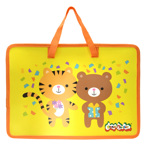 Папка для труда " Каляка-Маляка " А4 (330*260*75мм) с ручками, желтая, молния вокруг, печать на пластике, полиэстер