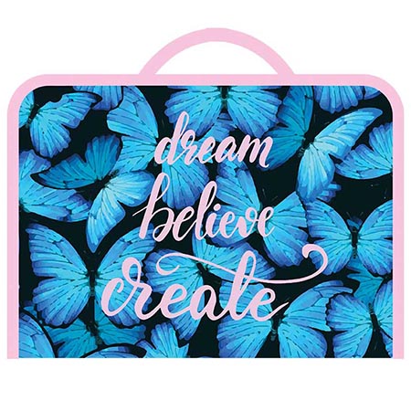 Папка для труда " Пчелка " А4 (325*230*25мм) ПТР-6 с ручками Голубые бабочки, молния вокруг, печать на пластике, материал ручек- ткань тесьма 18мм
