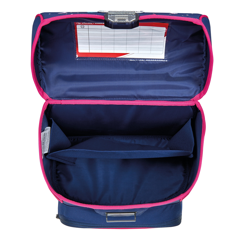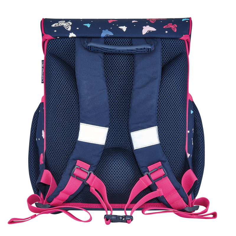 размер 37х31х22см, объем 16л; материал полиэстер; замок-защелка легко открывается и закрывается благодаря специальному клапану; 1 основное отделение с перегородкой; расписание уроков под крышкой ранца; передний наружный карман на молнии; грудная стяжка; водоотталкивающая ткань; светоотражатели ORAFOL на переднем кармане, боковых карманах и лямках; прочное пластиковое дно защищающие от загрязнения; 2 боковых кармана на резиночке; эргономичная спинка и уплотненные регулируемые лямки из вентилируемого материала. Вес менее 1000 гр