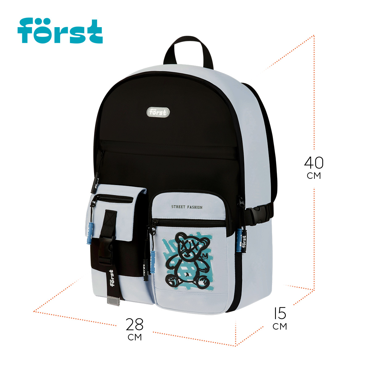 Эргономичный рюкзак серии F-Teens – стильный и функциональный. Рюкзак оснащен жесткой спинкой, содержит 1 вместительное основное отделение, 2 боковых кармана, 5 передних карманов, потайной карман на спинке, боковые фиксаторы-стяжки. Внутри имеется отделение для планшета или ноутбука.