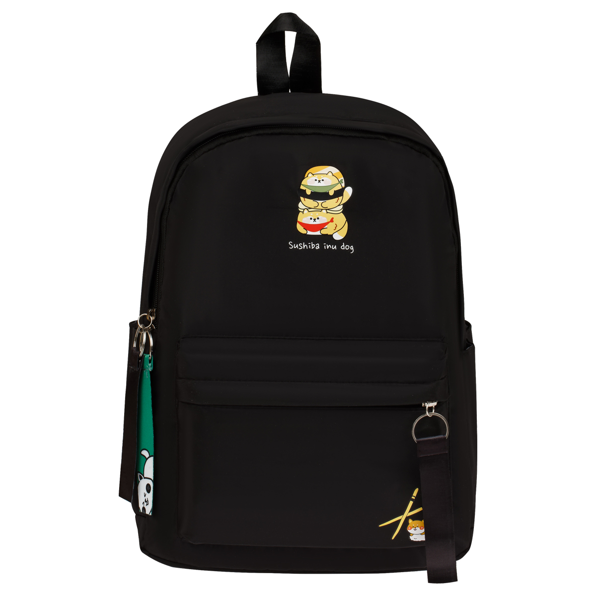 Рюкзак для девочки MESHU Sushiba Inu размером 39*29*13 см и объёмом 14,7 литра с одним вместительным отделением, большим накладным карманом спереди, боковыми карманами для мелочей. Подойдет для прогулок, отдыха, учебы и шоппинга. Рюкзак сшит из нейлона, имеет уплотненную спинку, регулируемые мягкие лямки и ручку для переноски. Он закрывается и открывается с помощью реверсной молнии со стилизованными бегунками-лентами. Милый дизайн с собачками понравится девочкам!