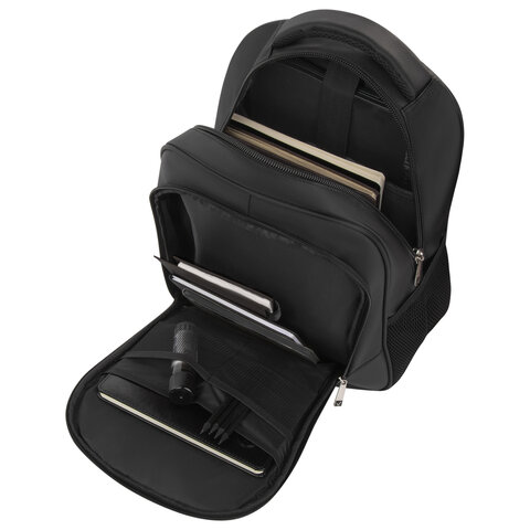 Функциональный и надежный рюкзак с отделением для ноутбука. Уплотненная вентилируемая спинка и лямки способствуют максимальному комфорту. Классический черный цвет и сдержанный дизайн делают эту модель практичной и универсальной.