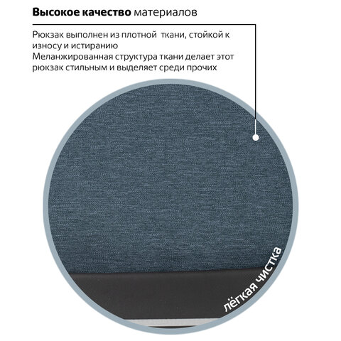 Рюкзак изготовлен из надежного практичного материала – полиэстера. Благодаря меланжированной структуре ткани этот рюкзак выделяется среди прочих.