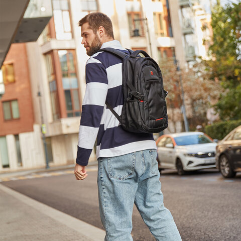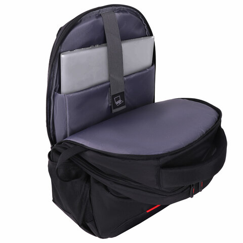 Важная деталь – отделение для ноутбука с диагональю экрана до 15,6" с надежной эластичной лентой на липучке. Плотные стенки и дно защитят гаджет от механических повреждений, а карман-органайзер, расположенный в дополнительном отделении, отлично подходит для пишущих принадлежностей, мобильного телефона, наушников, документов и прочих небольших вещей, которые могут пригодиться во время работы или в поездке.