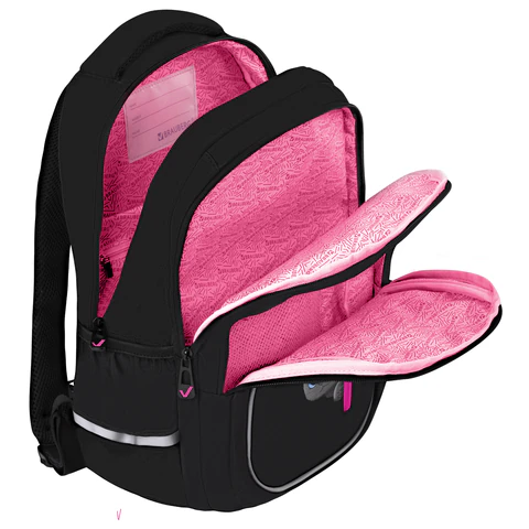 В основном отделении рюкзака можно легко и быстро разместить учебники и тетради формата А4+, а также воспользоваться прижимным отделением и дополнительным карманом на молнии. Также в основном отделении находится именная карточка школьника. Большое переднее отделение на молнии вмещает тетради и учебники формата А4. Внутри переднего кармана находится съемный карабин для ключей, отделение из сетки и карман для телефона. Такая организация пространства поможет держать принадлежности в сохранности и приучить ребенка к порядку.