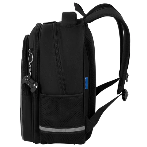 В основном отделении рюкзака можно легко разместить учебники и тетради формата А4+, воспользоваться дополнительным карманом. Также в основном отделении находится именная карточка школьника. Фронтальное отделение вмещает тетради и учебники формата А5; внутри расположены органайзер для канцтоваров, карман для телефона и отделение из сетки на молнии. Такая организация пространства поможет сохранить принадлежности в порядке и приучить ребёнка к аккуратности.