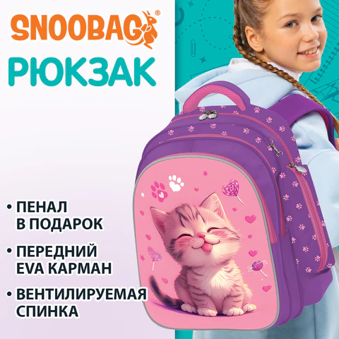 Школьные рюкзаки SNOOBAG MIND выполнены из влагоотталкивающей ткани, которая легко чистится. Передний карман рюкзака изготовлен из легкого формоустойчивого материала EVА, что обеспечивает защиту его содержимого от деформации.