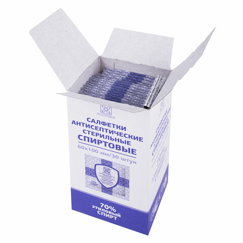 Спиртовые салфетки антисептические 60х100 мм КОМПЛЕКТ 100 шт., АСЕПТИКА, короб, ЦБ03233-МО05