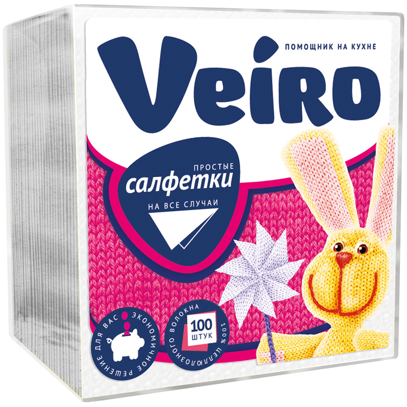 Салфетки бумажные Veiro, 1 слойн., 24*24см, белые, 100шт.