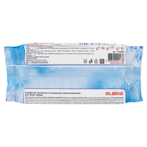 Универсальные влажные салфетки LAIMA идеально подходят для использования в офисе, дороге, дома, незаменимы на отдыхе и во время прогулок.