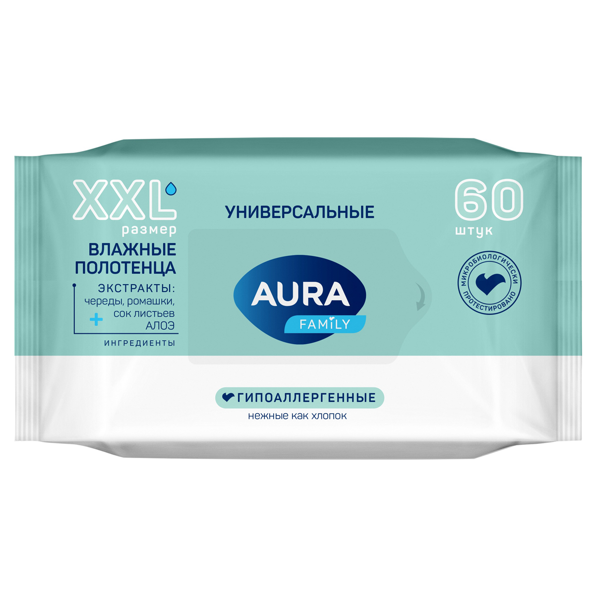 Полотенца влажные Aura "Family", 60шт., для всей семьи